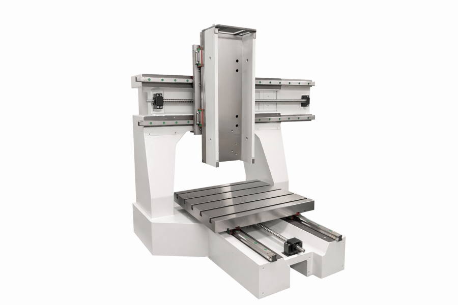 Die Basis jeder Maschine bildet ein Maschinenbett aus Mineralguss. Dieses sorgt durch seine hohe Dämpfung und Formstabilität für ruhigen Lauf, geringe Vibrationen und eine hohe Maßhaltigkeit. In Verbindung mit präzise montierten Linearführungen entsteht eine robuste mechanische Struktur, die auch bei anspruchsvollen Bearbeitungen konstant präzise arbeitet.